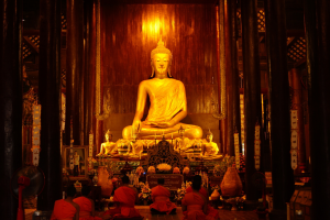 วัดกลางเป็นวัดเก่าแก่ที่มีประวัติยาวนาน สืบทอดพุทธศิลป์และพลังแห่งศรัทธามาหลายชั่วอายุคน จุดเด่นของวัดคือพระประธานปางมารวิชัยอันงดงาม เปล่งรัศมีทองอร่ามกลางวิหารไม้เก่า บรรยากาศสงบและขลัง สะท้อนความรุ่งเรืองของพระพุทธศาสนา วัดแห่งนี้ถือเป็นศูนย์รวมจิตใจของชุมชน และแรงบันดาลใจในการสร้างเครื่องรางแห่งความมั่งคั่งและเมตตา